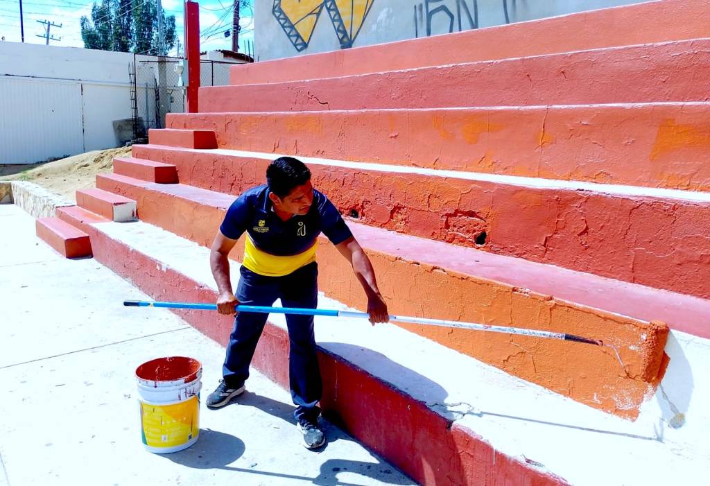 - Realizan trabajos de pintura y rehabilitación en la cancha.