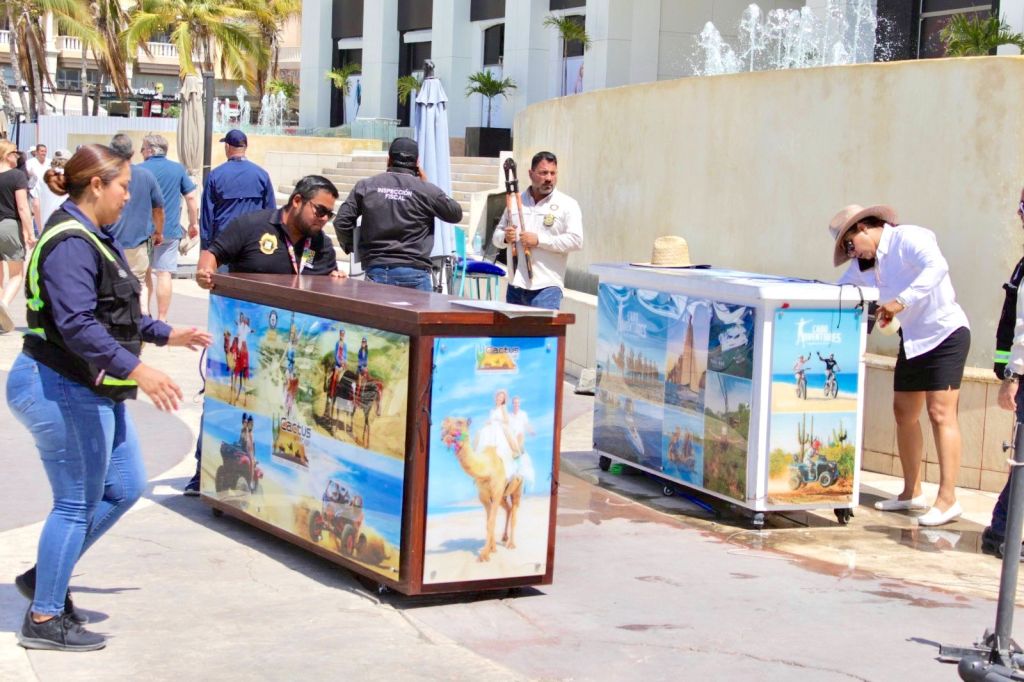 Los Cabos, Baja California Sur.– El XV Ayuntamiento de Los Cabos realizó un operativo en la Marina de Cabo San Lucas, donde fueron retirados 16 módulos turísticos que operaban fuera de la normativa municipal.