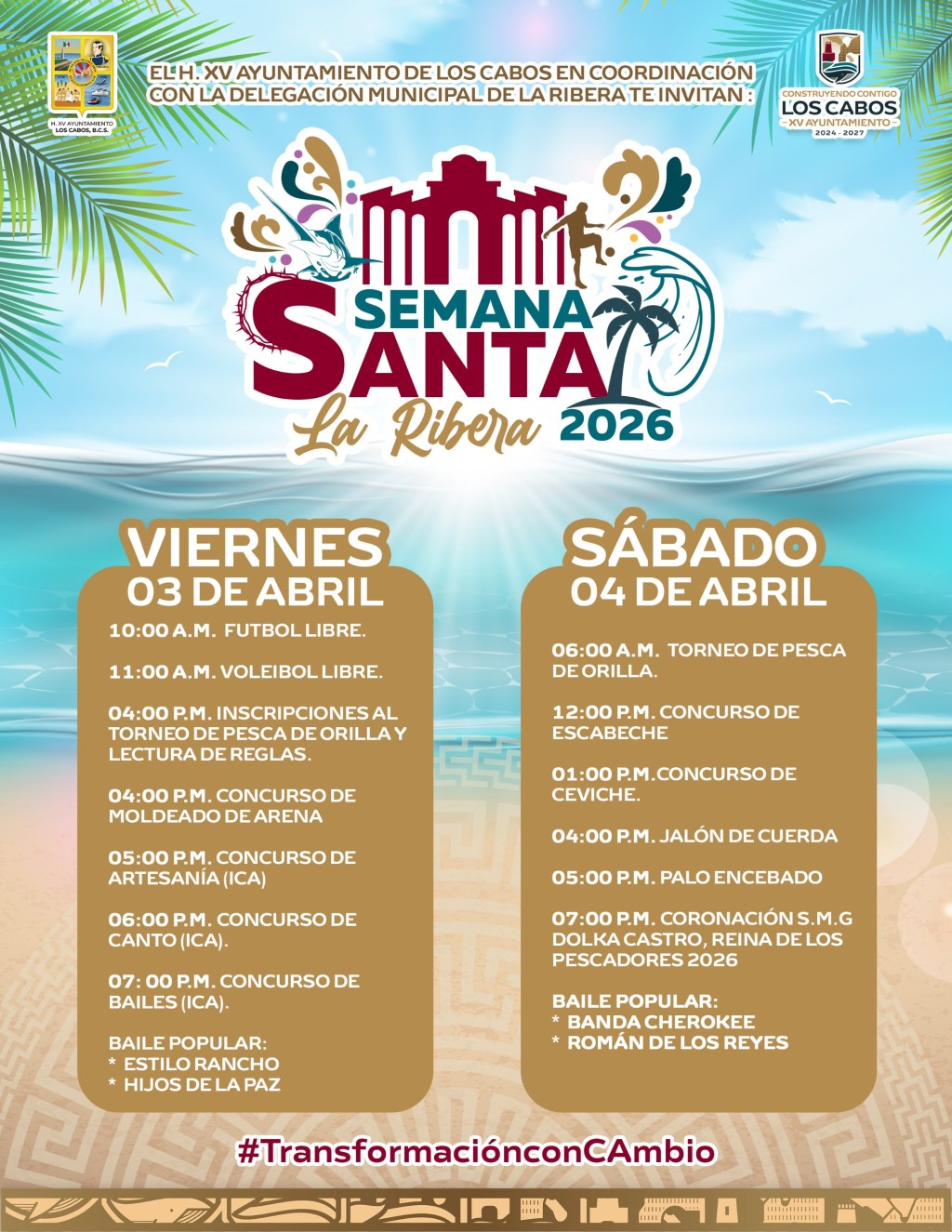 Los Cabos, Baja California Sur.– El XV Ayuntamiento de Los Cabos, en coordinación con la Delegación Municipal de La Ribera, invita a la ciudadanía a participar en las actividades de Semana Santa La Ribera 2026, que se llevarán a cabo los días 3 y 4 de abril.
