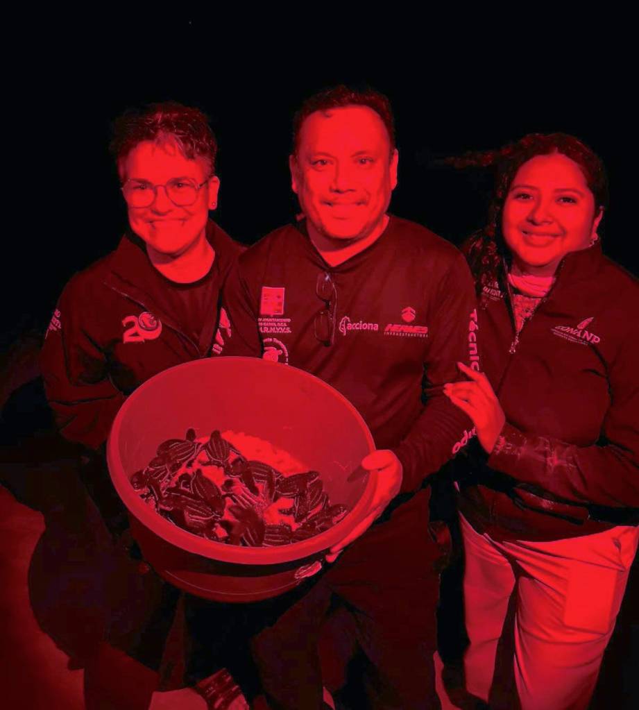 Como parte del protocolo, se utilizó luz roja durante la liberación, técnica que evita desorientar a las crías, permitiendo que sigan su instinto natural hacia el mar y aumentando sus probabilidades de supervivencia.