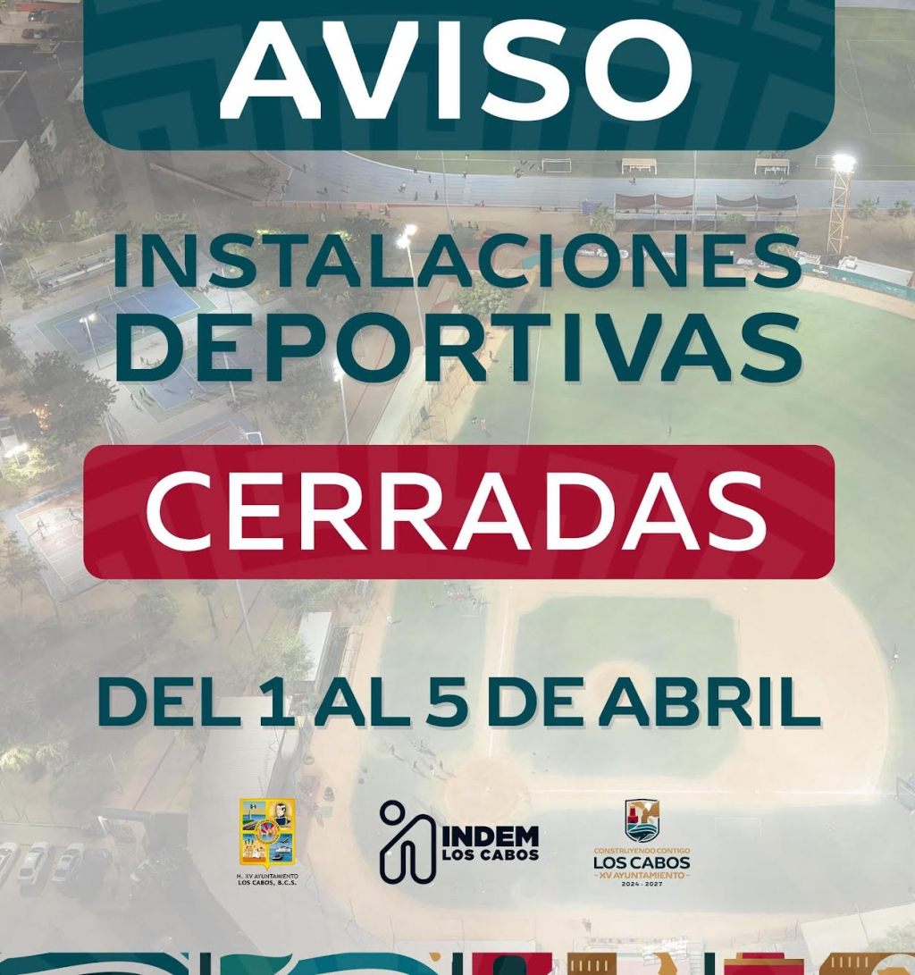 Los Cabos, Baja California Sur.– El XV Ayuntamiento de Los Cabos, a través del Instituto del Deporte del Municipio (INDEM), informó la suspensión temporal de actividades en todas las unidades deportivas durante el periodo de Semana Santa.