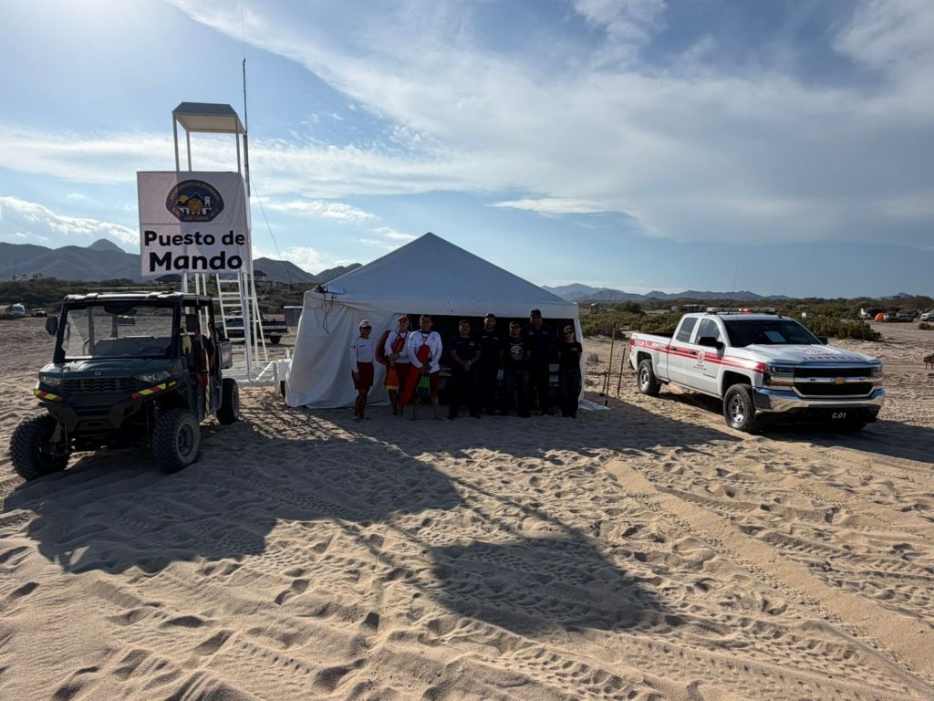 El operativo incluye la participación de cuerpos de rescate, bomberos y la Secretaría de Marina, quienes mantienen vigilancia permanente en playas de Cabo San Lucas, San José del Cabo y la zona del Pacífico.