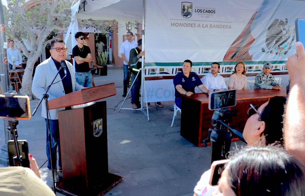 Los Cabos, Baja California Sur.– El XV Ayuntamiento de Los Cabos llevó a cabo una ceremonia de honores a los símbolos patrios en la explanada del palacio municipal, con el objetivo de fortalecer los valores cívicos en la comunidad.