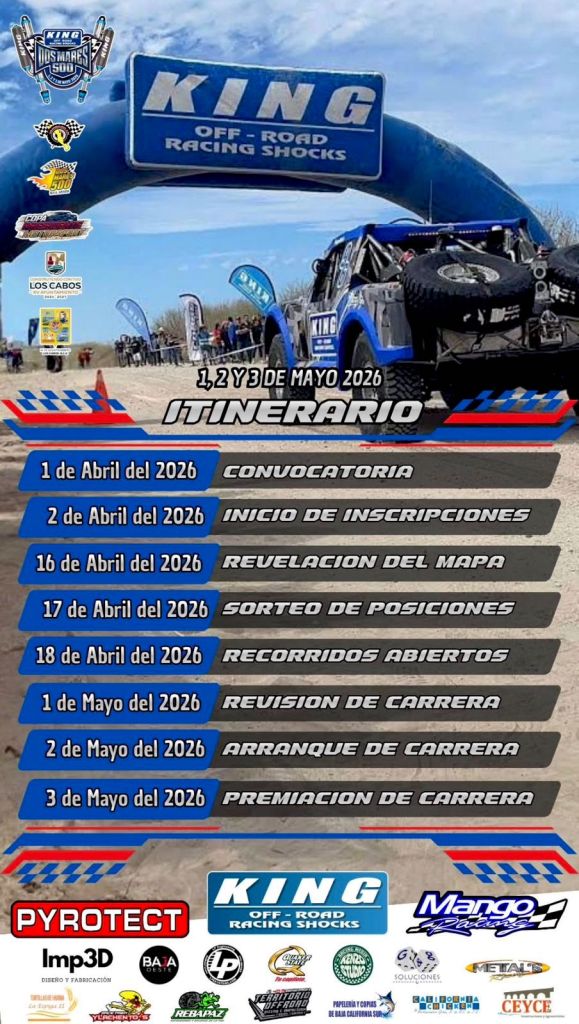 Los Cabos, Baja California Sur.– Autoridades municipales confirmaron que todo se encuentra listo para la carrera King Shocks Dos Mares 500, uno de los eventos deportivos más importantes de la región.