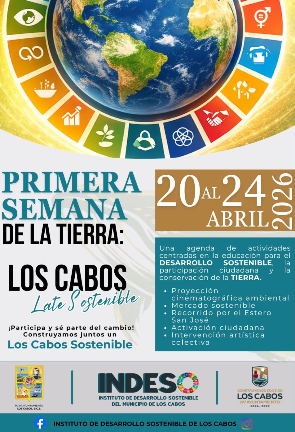 Los Cabos, Baja California Sur.– El XV Ayuntamiento de Los Cabos invita a la ciudadanía a participar en la Primera Semana de la Tierra, bajo el lema “Los Cabos Late Sostenible”.