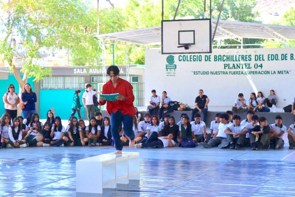 Los Cabos, Baja California Sur.– El programa “Rutas Creativas” llevó una jornada cultural a estudiantes del Cobach #04 en Cabo San Lucas, como parte de las acciones del Instituto de la Cultura y las Artes (ICA).