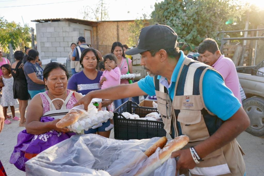 Resumen: Ayuntamiento entrega apoyos alimentarios y anuncia mejoras en agua y calles para familias de Real Unidad en Cabo San Lucas.