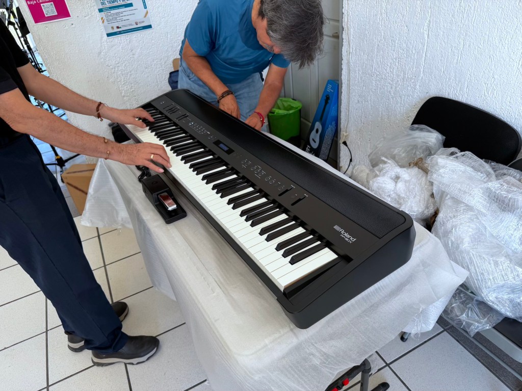 Entre los equipos entregados destacan piano digital, teclado, clarinete, bajo eléctrico y ukelele.